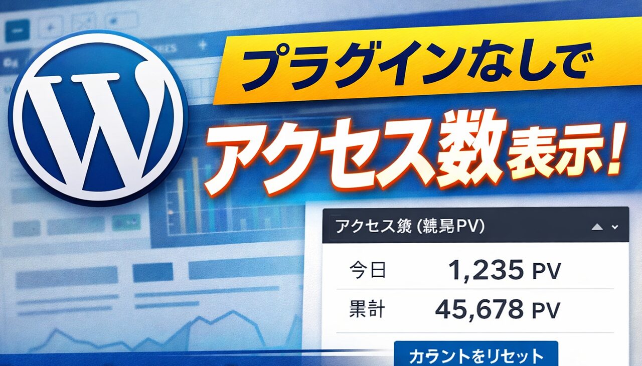 【WordPress】プラグインなし!functions.phpだけで管理画面にアクセス数(PV)を表示する方法[:]Posted on 2026年2月10日2026年2月10日 by 小清水 和真WordPressでサイト運営をしている Continue reading