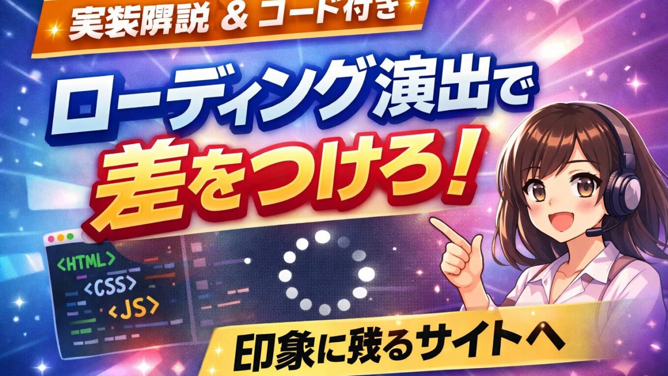 【実装例付き】ローディング演出で“印象に残るサイト”を作る方法|文字アニメーション×スキップ対応Posted on 2026年4月5日2026年4月5日 by 小清水 和真「なんとなく作ったサイト」と「記憶に残る Continue reading