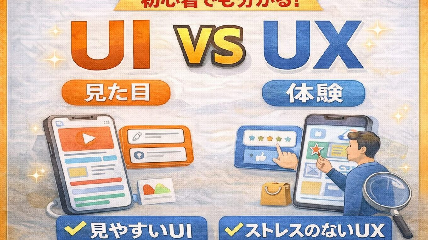 UI/UXの違いを分かりやすく解説ー初心者でも理解できる「見た目」と「体験」の本質Posted on 2026年4月16日2026年4月16日 by 小清水 和真Web制作やアプリ開発をしていると必ず出 Continue reading