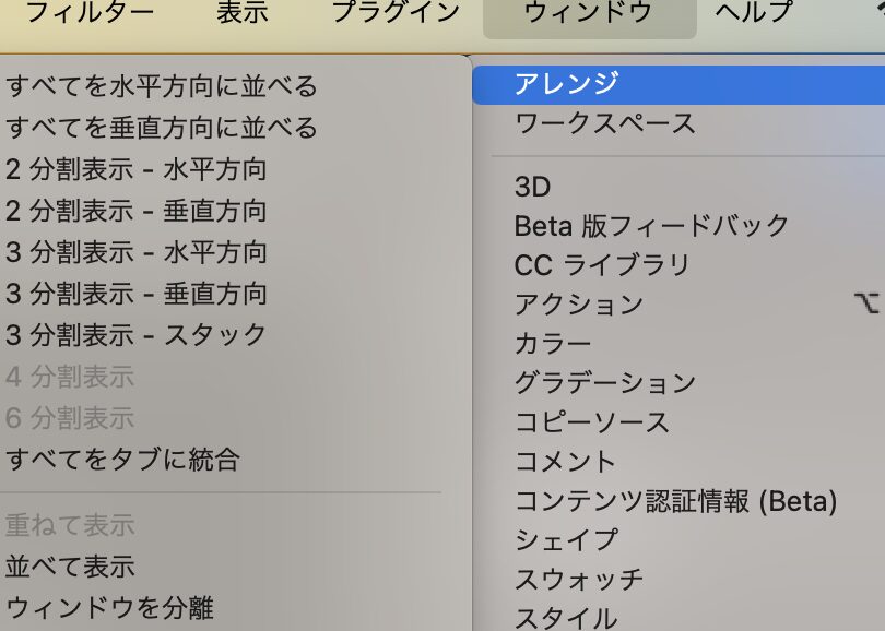 ウィンドウメニューから新しいパネルを追加したり、不要なパネルを隠すこともできます。