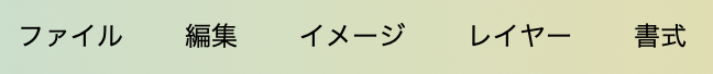 メニューバーは画面の上部にあり、ファイル、編集、画像、レイヤーなどのメニューを含んでいます。
