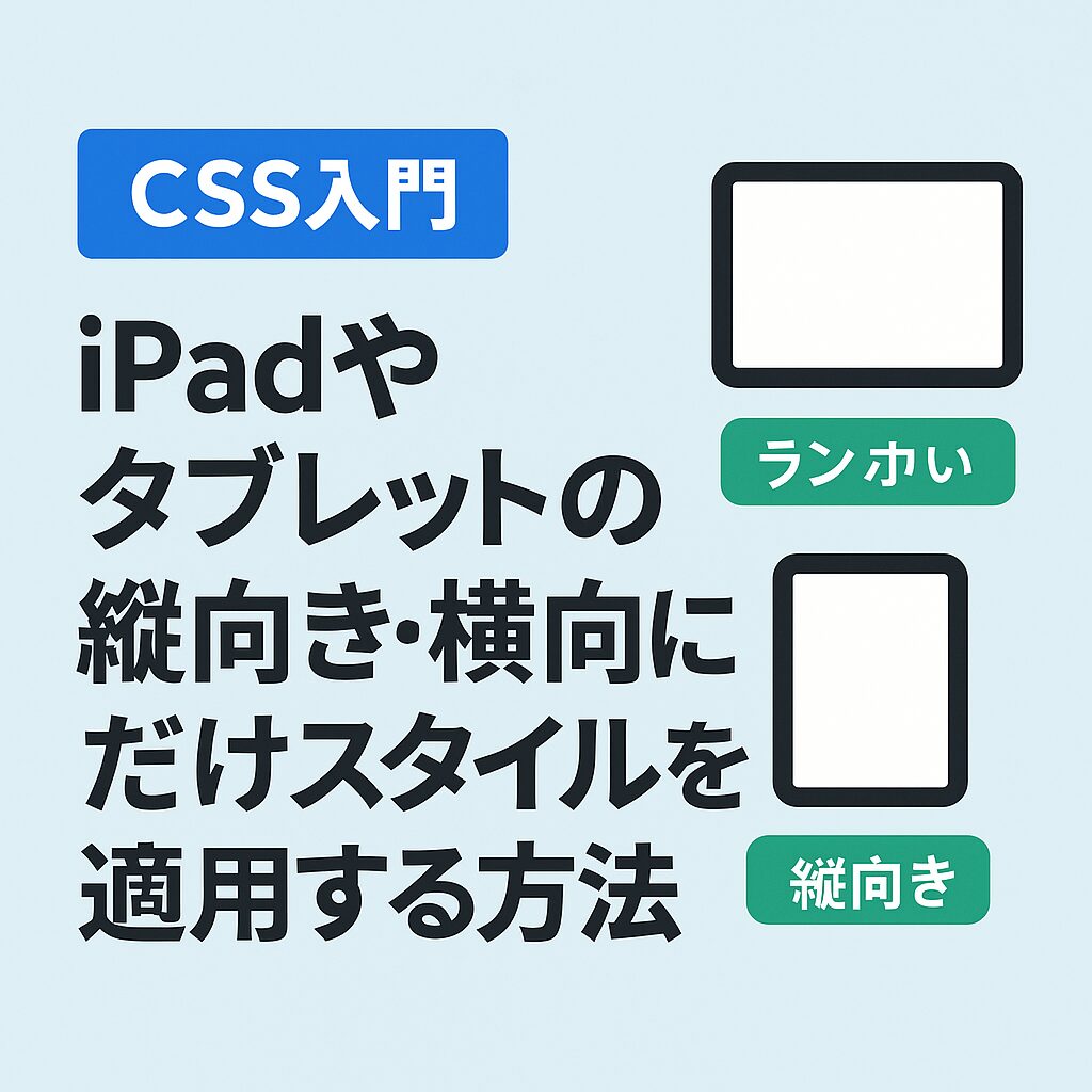 CSSのメディアクエリで orientation を使うと、画面の向きを条件にスタイルを切り替えることができます。