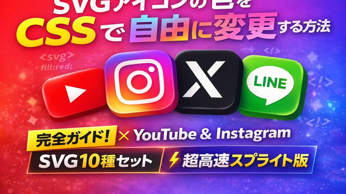 しかし、通常の <img> タグでSVGを読み込んでいる場合、CSSだけで色を変更することは基本的にできません。この記事では、SVGアイコンの色をCSSで自由に変更する方法を、YouTubeとInstagramの実例を使いながら解説します。