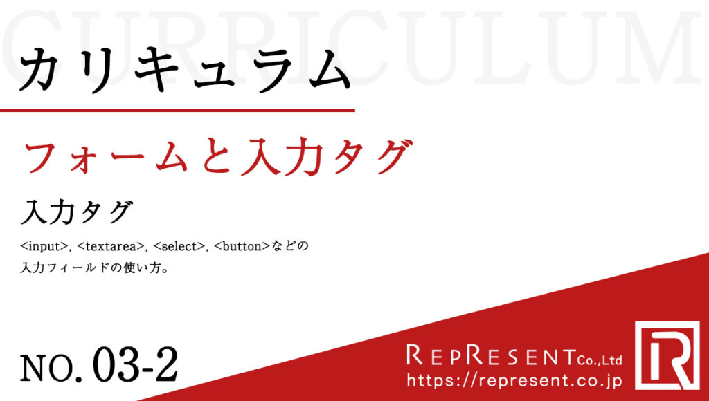 <input>, <textarea>, <select>, <button> タグを使用して、