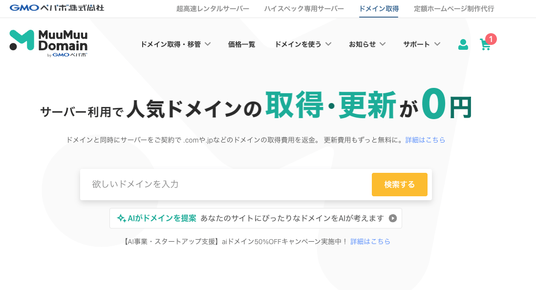 「 検索 」 ボタンをクリックするとドメインの検索がはじまります。