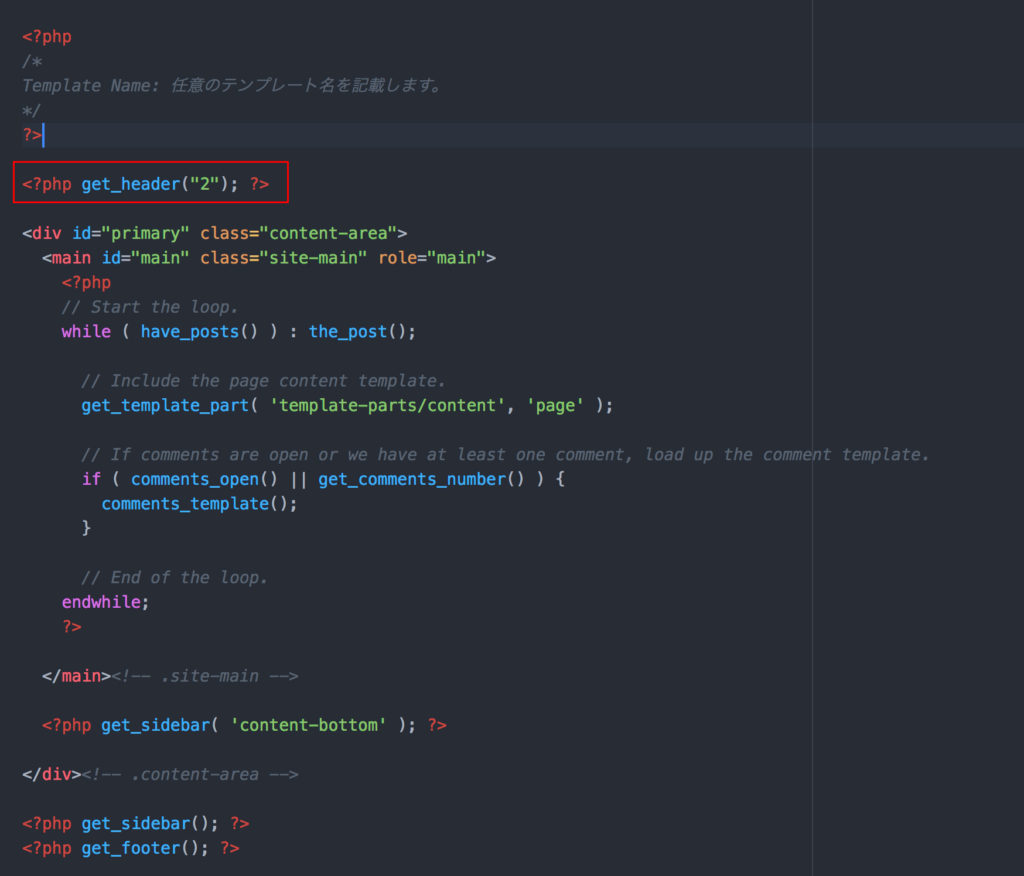 ヘッダー部分のタグを入力します。